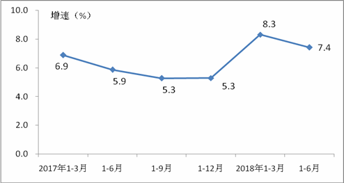 (一)GDP总体好于上年。上半年全市GDP在农业生产向好、工业生产平稳、服务业较快增长的带动下,同比增长7.4%,增幅比去年同期提高1.5个百分点。今年以来经济运行总体好于2017年,但上半年GDP增长率低于一季度0.9个百分点。